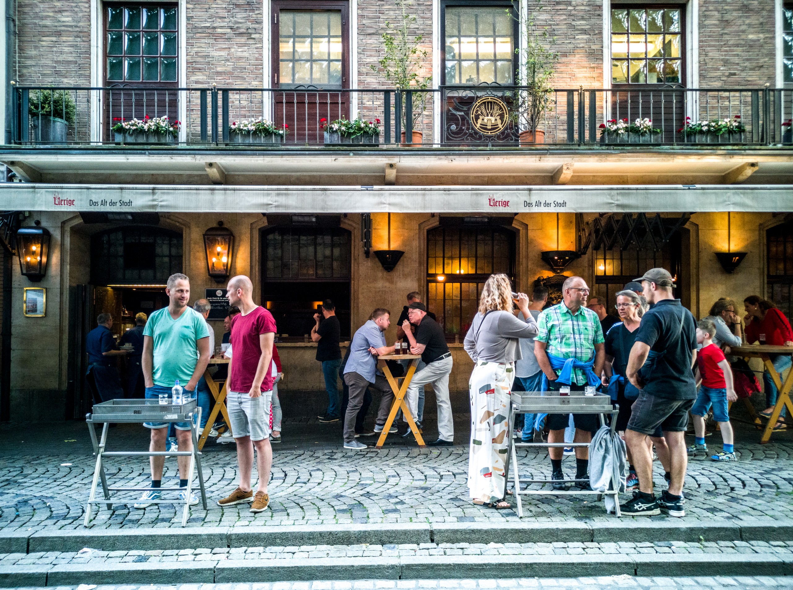 Allez à Düsseldorf sans aller boire une « Altbier » à Zum Uerige, c’est pêché ! Cette gigantesque brasserie sert de la bière et des plats typiques aux locaux et touristes depuis 150 ans. Pas mal ! La spécialité de la brasserie, outre la Altbier qu’ils brassent eux même, c’est le goulasch. Malheureusement, j’arrive trop tard. La cuisine vient juste de fermer. Je m’en vais donc me mêler aux nombreux clients rassemblés sur la terrasse pour déguster ma première bière. Ce ne sera pas la première.