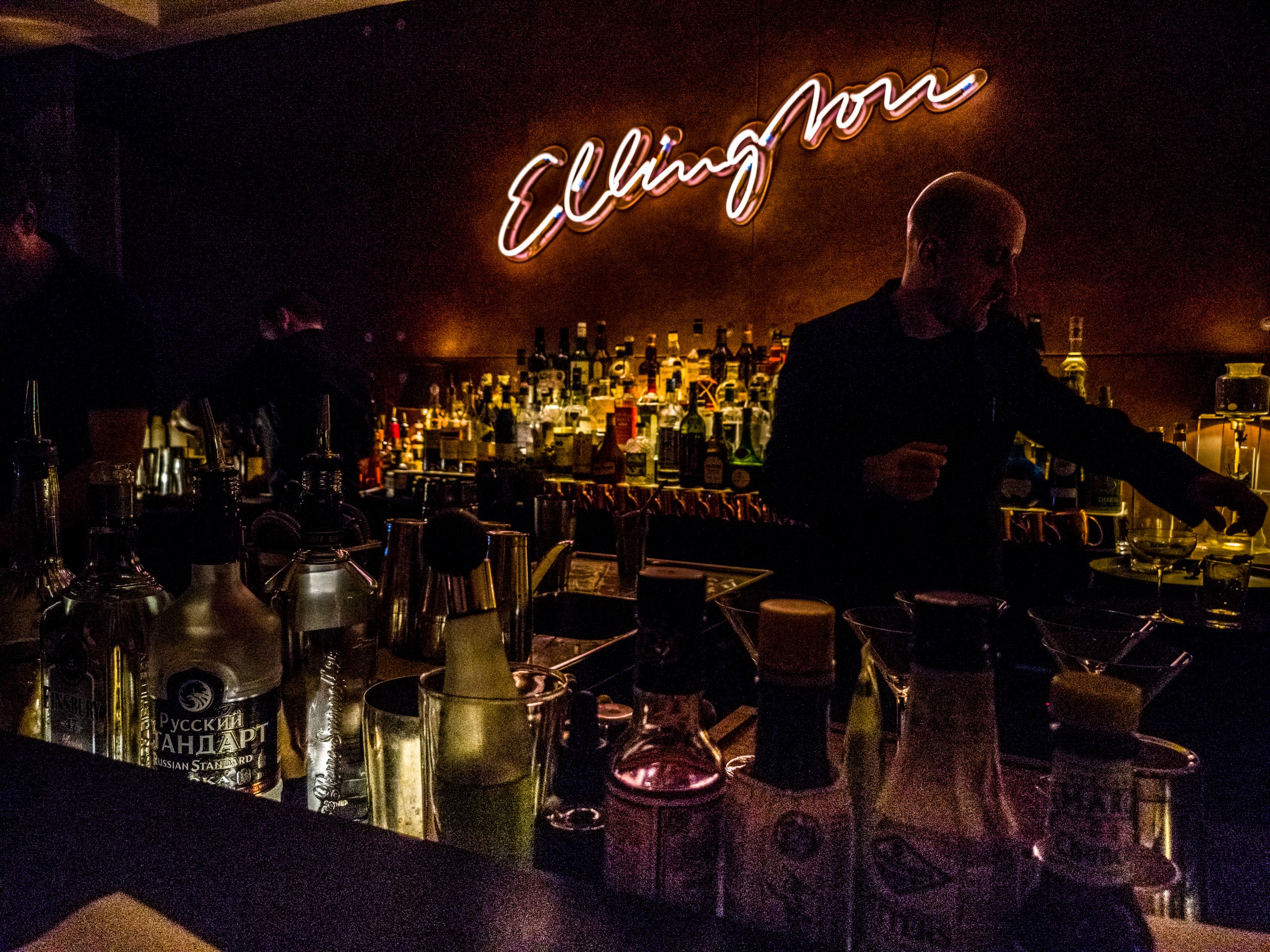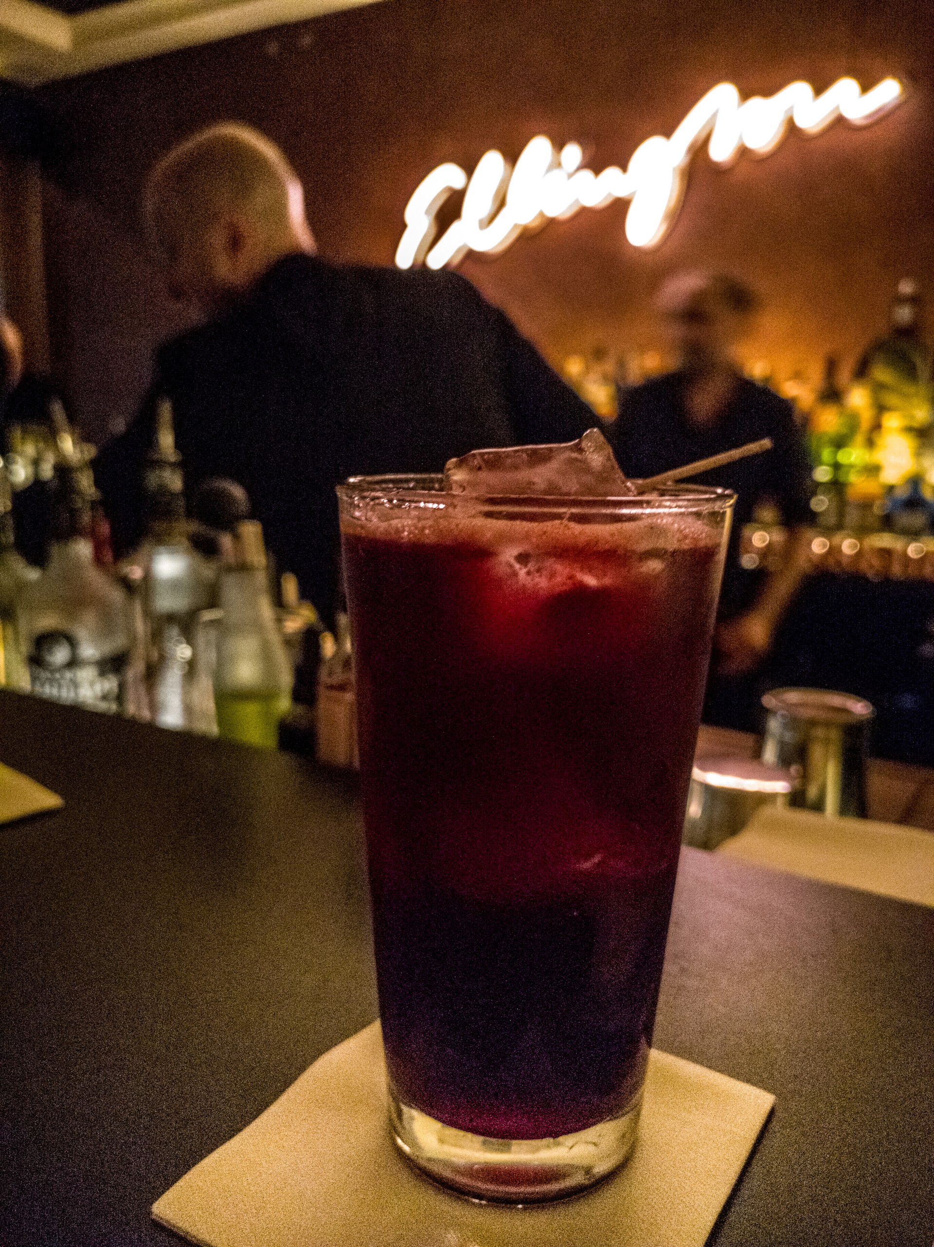 Il y a toujours un dernier pour la route… sur le chemin du retour à deux pas de mon Air BnB, je tombe sur un bar que j’ai vu plusieurs fois mentionné : Ellington. L’intérieur est petit, sobre, mais le regard est immédiatement attiré par le petit néon rose qui trône au dessus du bar. Je m’installe au comptoir, on me sert prestement un verre d’eau et vient la dure tâche de choisir un cocktail parmi la liste. Si les recettes sont subtiles et originales, la présentation est simple et sans fioriture. Un peu comme le cadre du bar qui est lui-même sans prétention. Et ça, c’est vraiment bien !