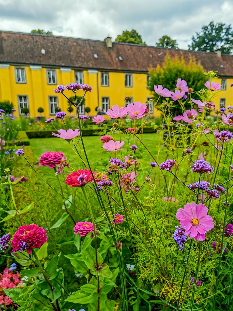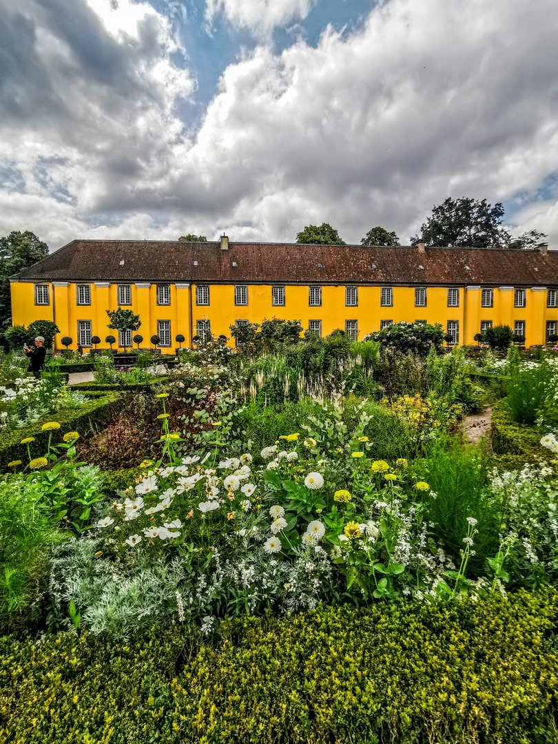 En parlant de plaisir, le tram qui vous emmène jusqu’au château de Benrath est déjà un petit régal en soi. Bordé de tout côté par des parcs, il apparaît comme un bonbon rose rococo dans son écrin de verdure. Le temps manquant, je ne visiterai pas (d’autant plus qu’en plus du château, il y a des petits musées dans les dépendances) mais les jardins sont accessibles gratuitement. Et on comprend pourquoi ils sont si grands : Benrath, construit par l’électeur palatin Charles-Théodore, était un château de plaisance. Les distractions les plus plaisantes pour l’époque se trouvaient à l’extérieur, dans les jardins et à la chasse. C’est le Français Nicolas de Pigage qui dessina les jardins. Mélangeant le style français (avec des parterres bien dessinés, de plans d’eau) et anglais (avec un bosquet, une forêt reconstituée et une cascade), on peut facilement y passer deux heures rien qu’à l’explorer. Parmi les points d’orgue des jardins, j’ai retenu le potager/verger/jardins aux plantes aromatiques qui reconstitue en tout point un jardin qui servait à nourrir ceux qui habitaient le château et leurs invités.