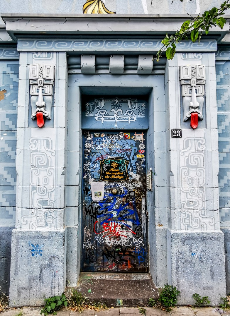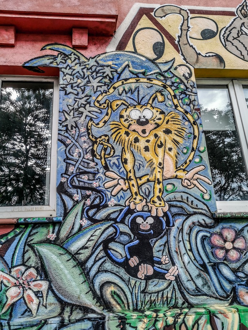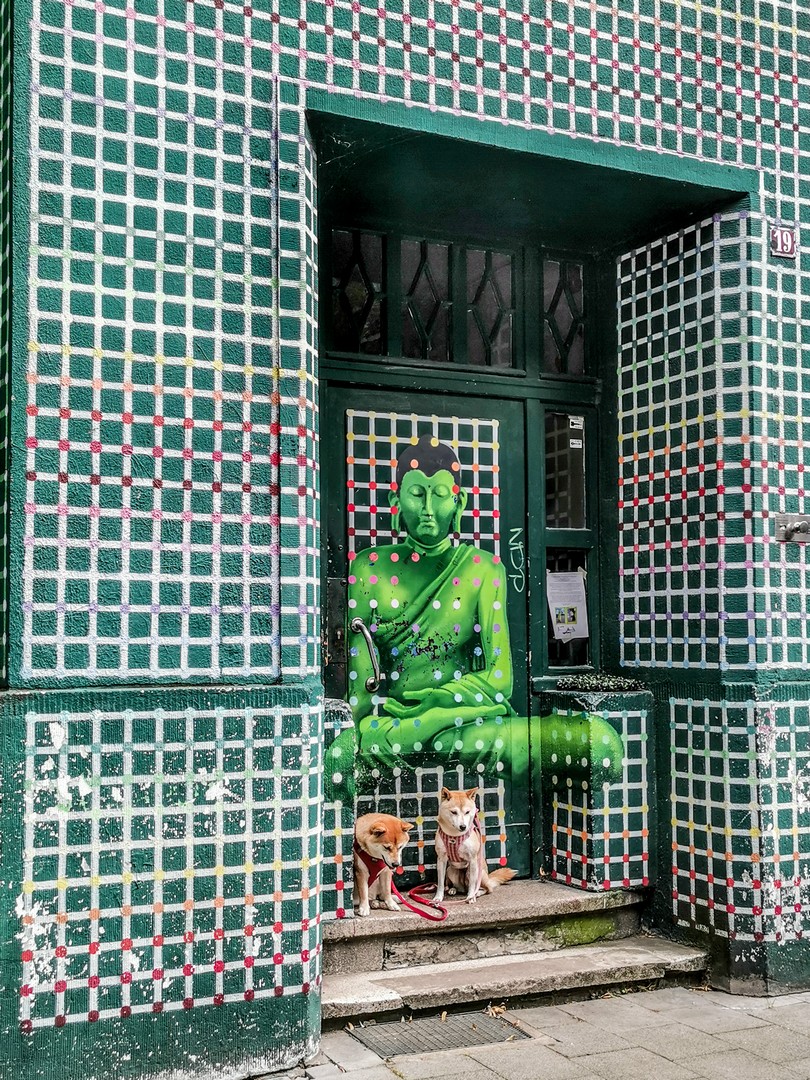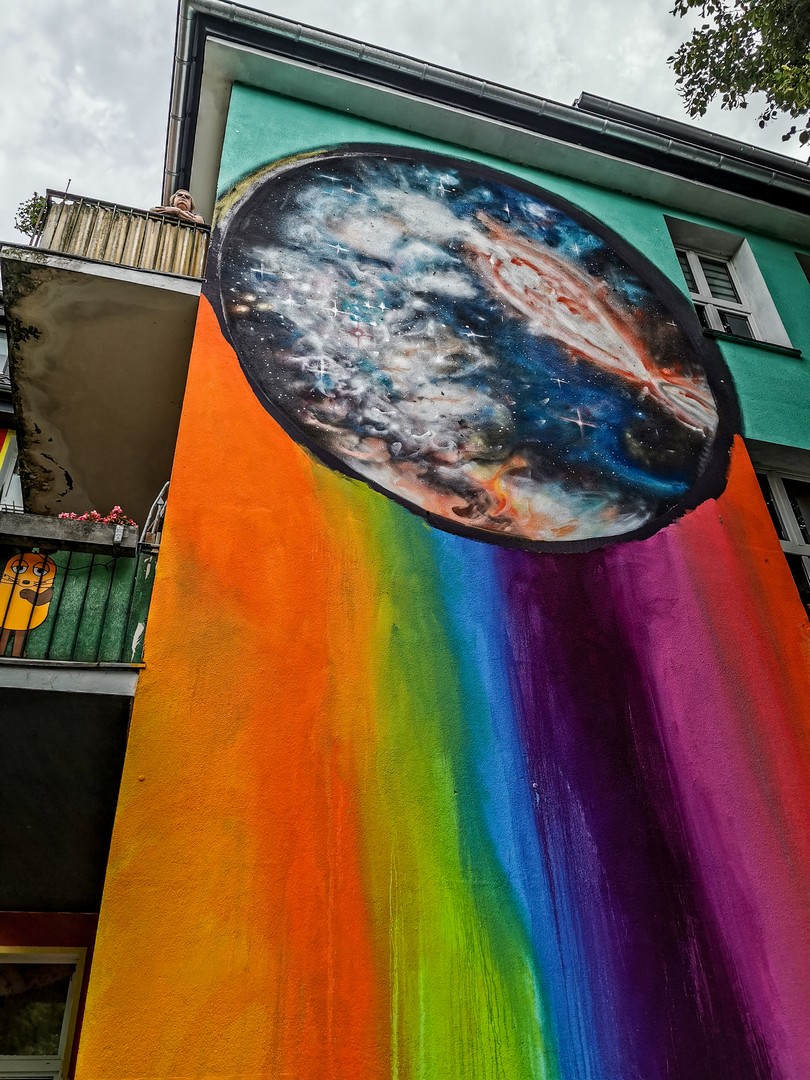 Après ce petit aparté historique, à quoi ressemble Kiefernstraße ? Tout simplement à une énorme œuvre de street art à elle toute seule. Toutes les maisons de la rue, sans exception, sont customisées avec des fresques géantes couvrant la totalité des façades. On y trouve tous les genres d’expression : de la simple peinture à la bombe en passant par les mosaïques et la sculpture… On en littéralement le souffle coupé tellement la quantité, l’ampleur et la qualité des œuvres est énorme. Surtout, Lectrice, Lecteur, ne loupe pas ça !