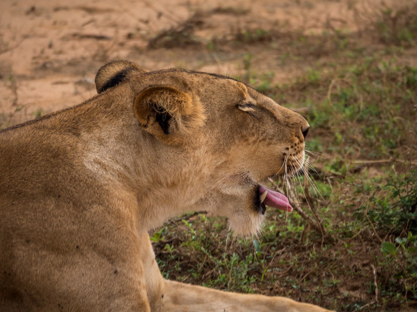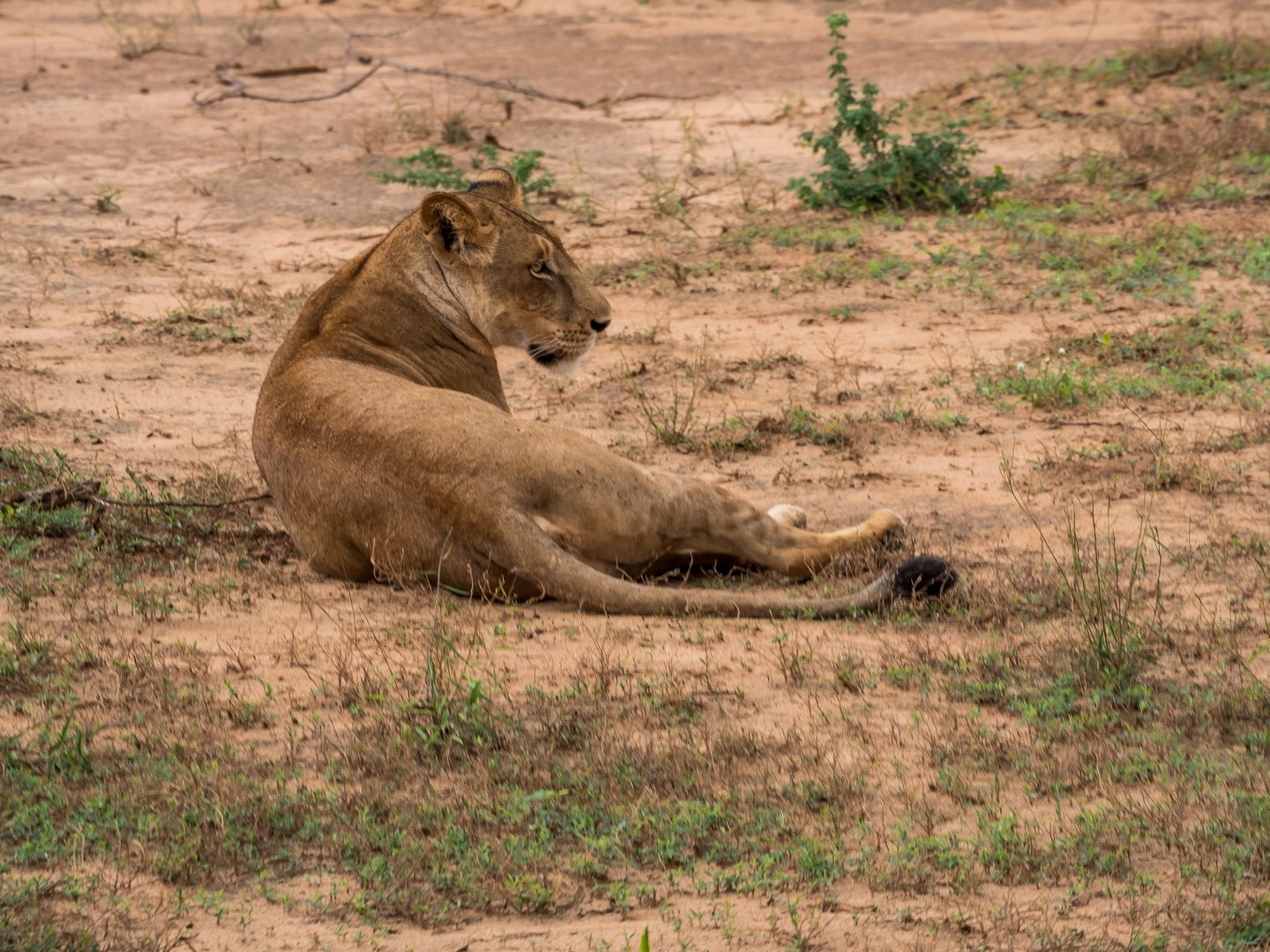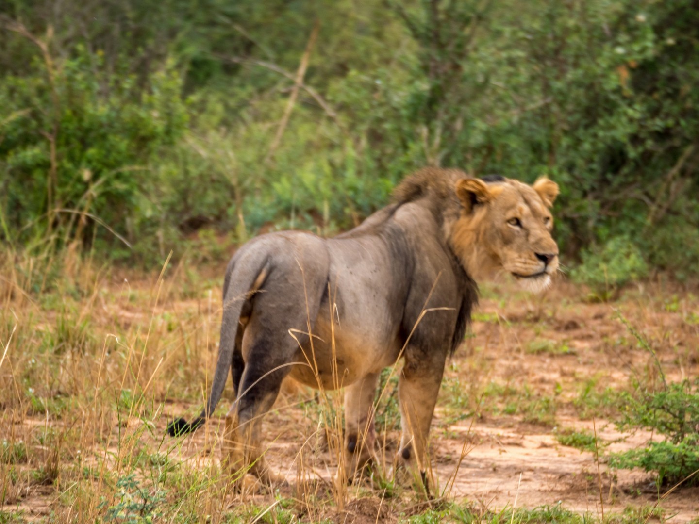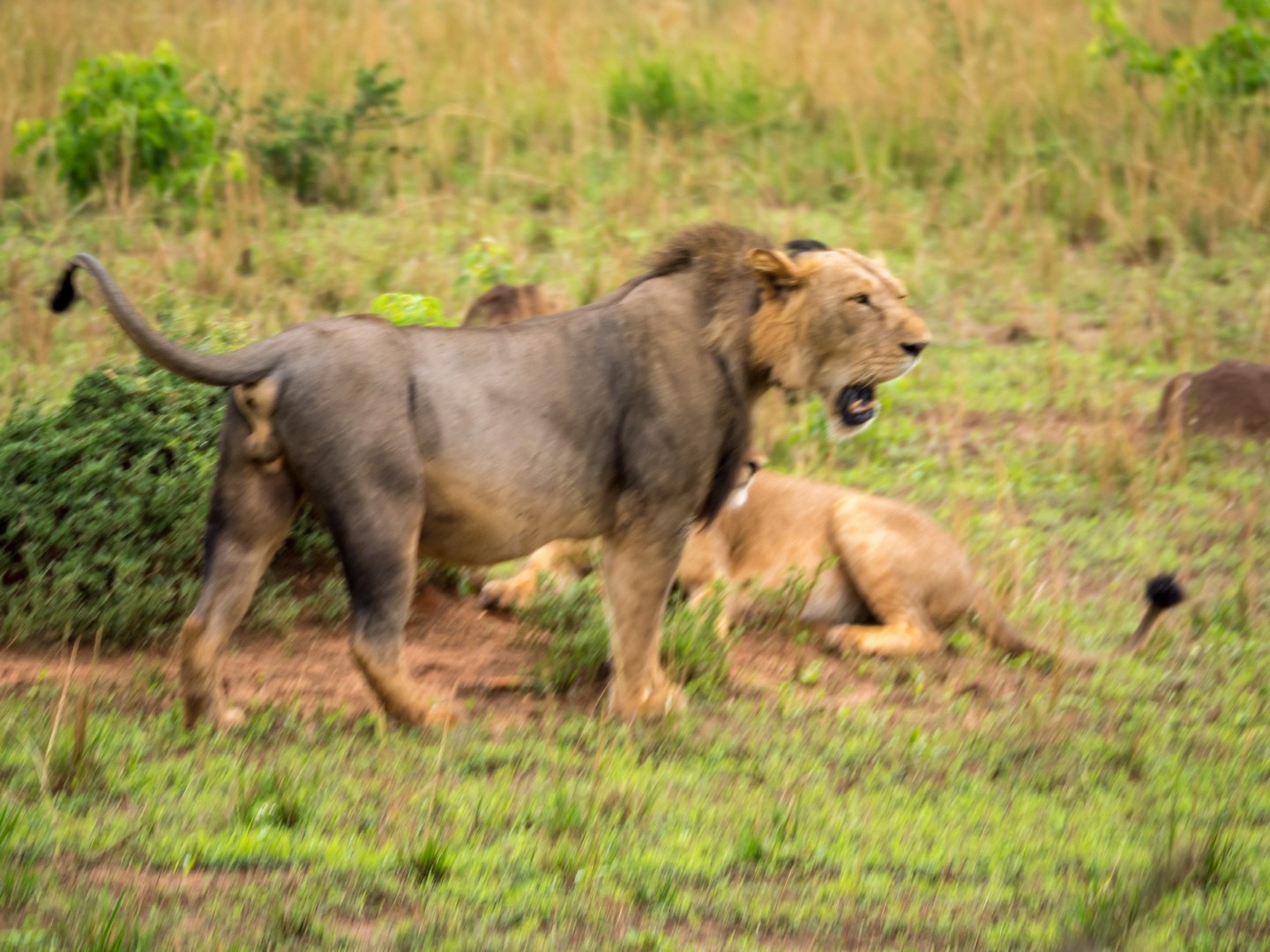 Nous allons même assister à une véritable « cat fight ». La deuxième femelle, pensant que la première avait terminé de se régaler, a voulu également prendre une bouchée de l’antilope. Mais non, un gros grognement et un violent coup de patte qui nous a tous fait battre en retraite dans les camions ont vite remis la gourmande à sa place. TRES impressionnant ! Et un peu plus loin, c’est carrément un lion (à la maigre crinière, mais un lion quand même) que nous allons entendre rugir !