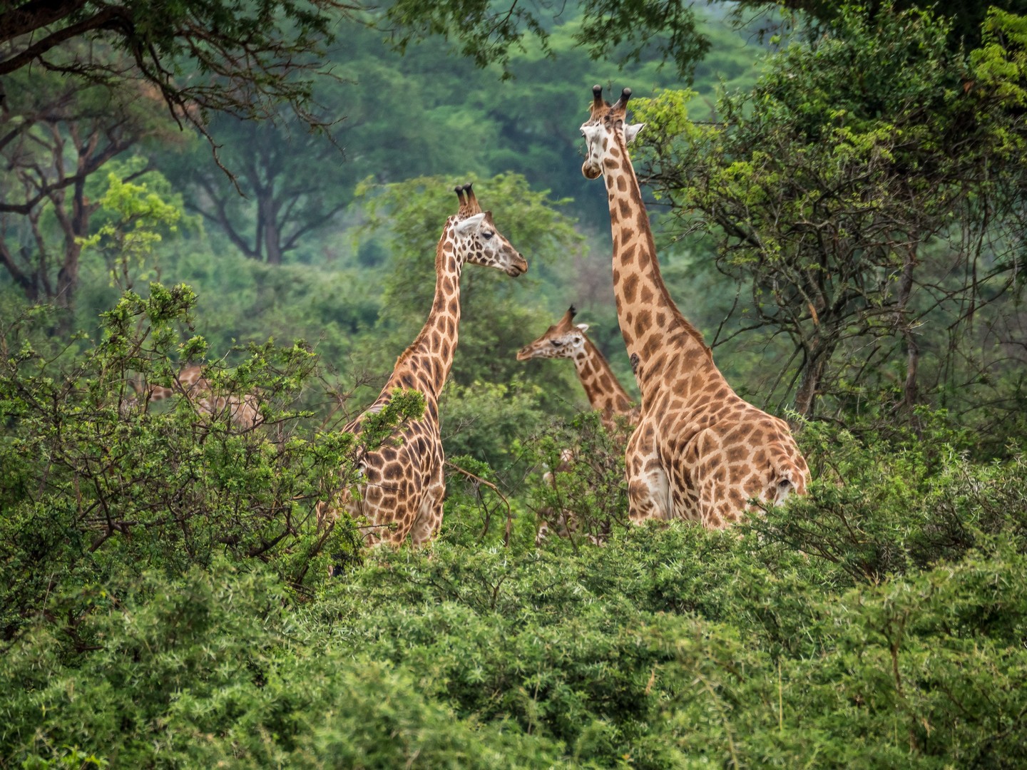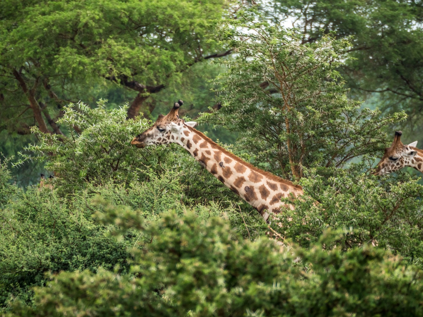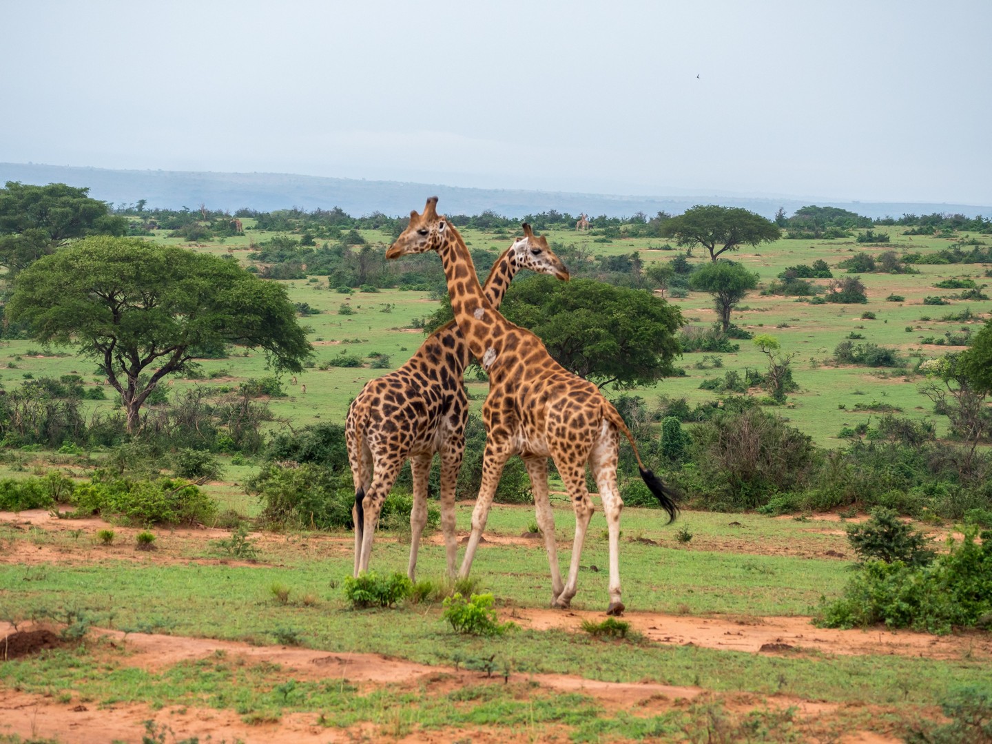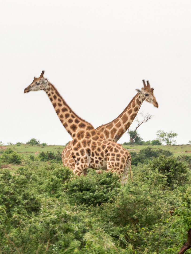 Parmi les animaux préférés de la savane, il y a les girafes et dans un endroit un peu plus boisé de la savane, nous croisons tout un énorme troupeau. Les girafes se nourrissant principalement d’acacias, pas étonnant de les trouver là ! Leurs long cils, leurs grands cous, leurs fines jambes leurs donnent l’apparence de demoiselles timides, ce qu’elle sont en fait. Elles n’aiment pas trop qu’on les approche mais elles sont tellement grandes qu’elles sont faciles à observer ! Le plus comique étant de voir une tête dépasser des arbres !