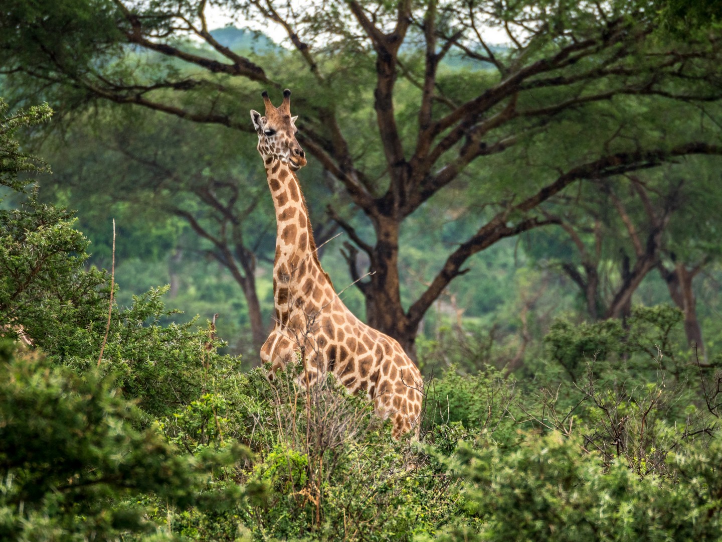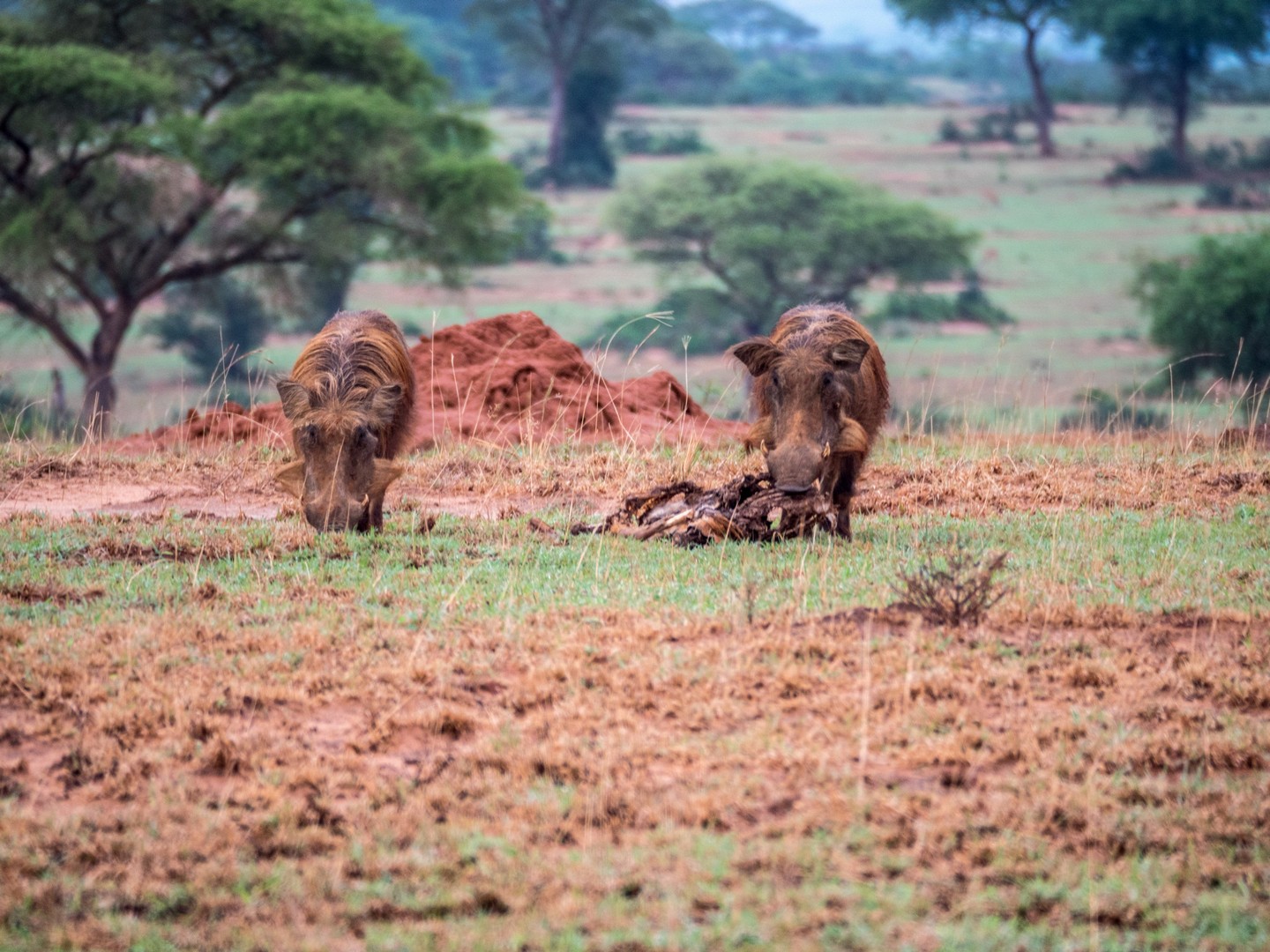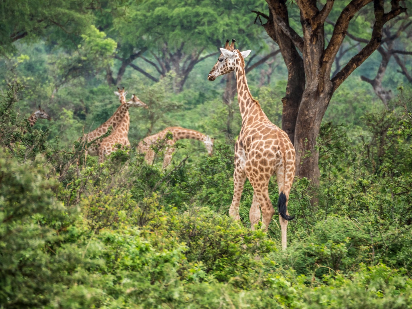 Parmi les animaux préférés de la savane, il y a les girafes et dans un endroit un peu plus boisé de la savane, nous croisons tout un énorme troupeau. Les girafes se nourrissant principalement d’acacias, pas étonnant de les trouver là ! Leurs long cils, leurs grands cous, leurs fines jambes leurs donnent l’apparence de demoiselles timides, ce qu’elle sont en fait. Elles n’aiment pas trop qu’on les approche mais elles sont tellement grandes qu’elles sont faciles à observer ! Le plus comique étant de voir une tête dépasser des arbres !