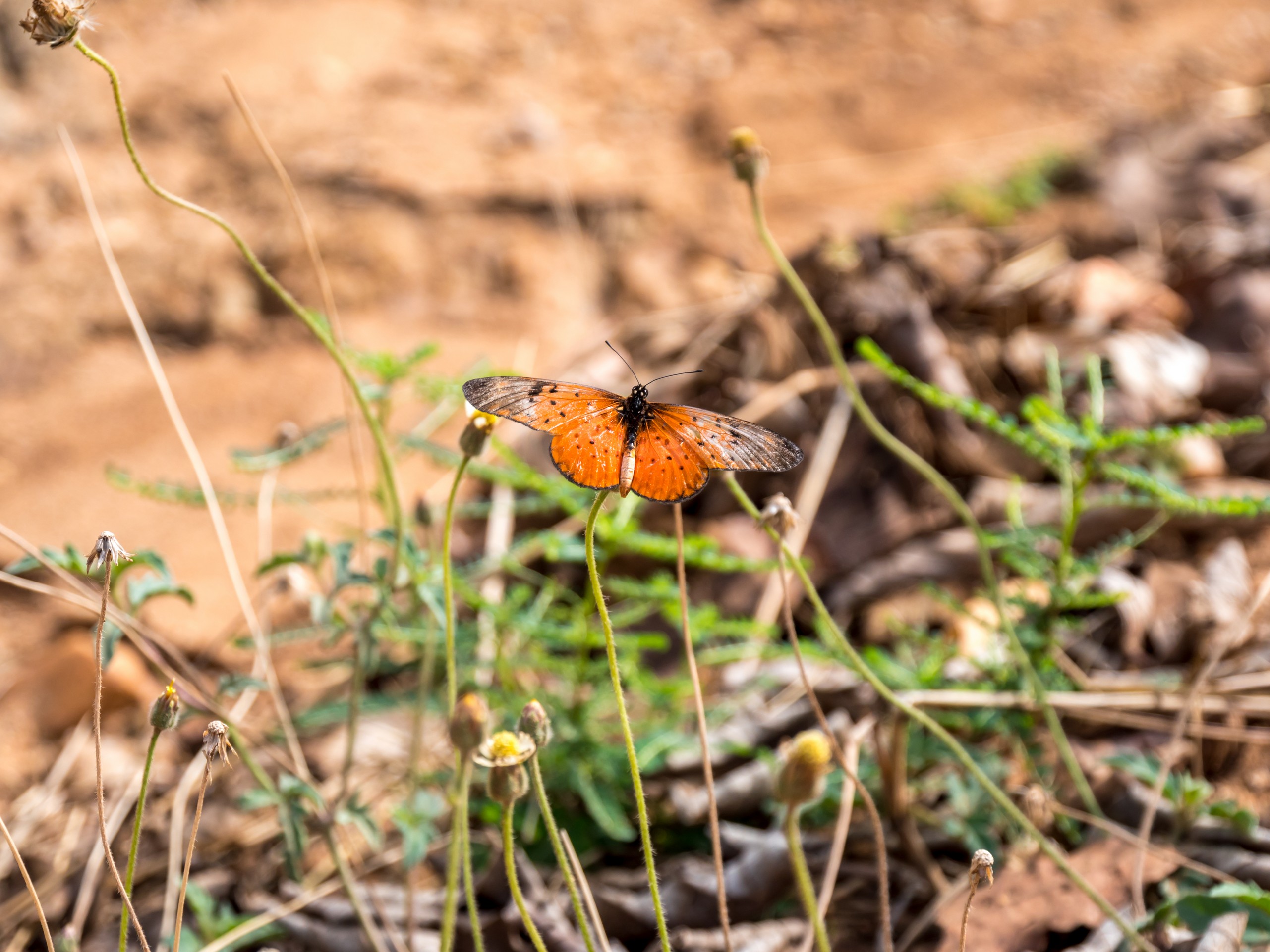 Un peu plus loin, nous voyons une grosse forme bouger. Un autre buffle ? Les voitures s’arrêtent, il n’y a pas de doute : c’est un éléphant ! Il est encore loin mais un animal de cette taille, ça se rapproche rapidement et à moins que ce ne soit un mâle solitaire, les autres ne devraient pas être loin ! J’ai beau avoir déjà vu des éléphants à Addo Elephant National Park en Afrique du Sud, cet éléphant, même de loin, procure une réelle émotion. Une émotion qui est nourrie par celle des autres dans la voiture. Emma qui adore les animaux a les yeux qui pétillent et une large sourire sur les lèvres. Les animaux ont beau être loin, on parle bas, on ne fait pas trop de bruit. En fait, nous sommes royalement seuls sur la route. Un véritable luxe pour ceux qui connaissent les routes encombrées de Kruger National Park !
