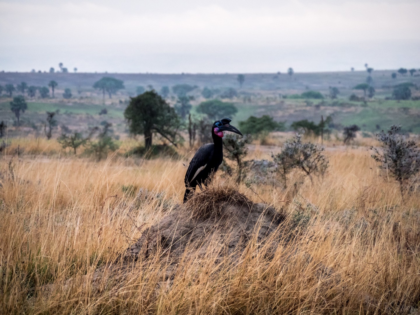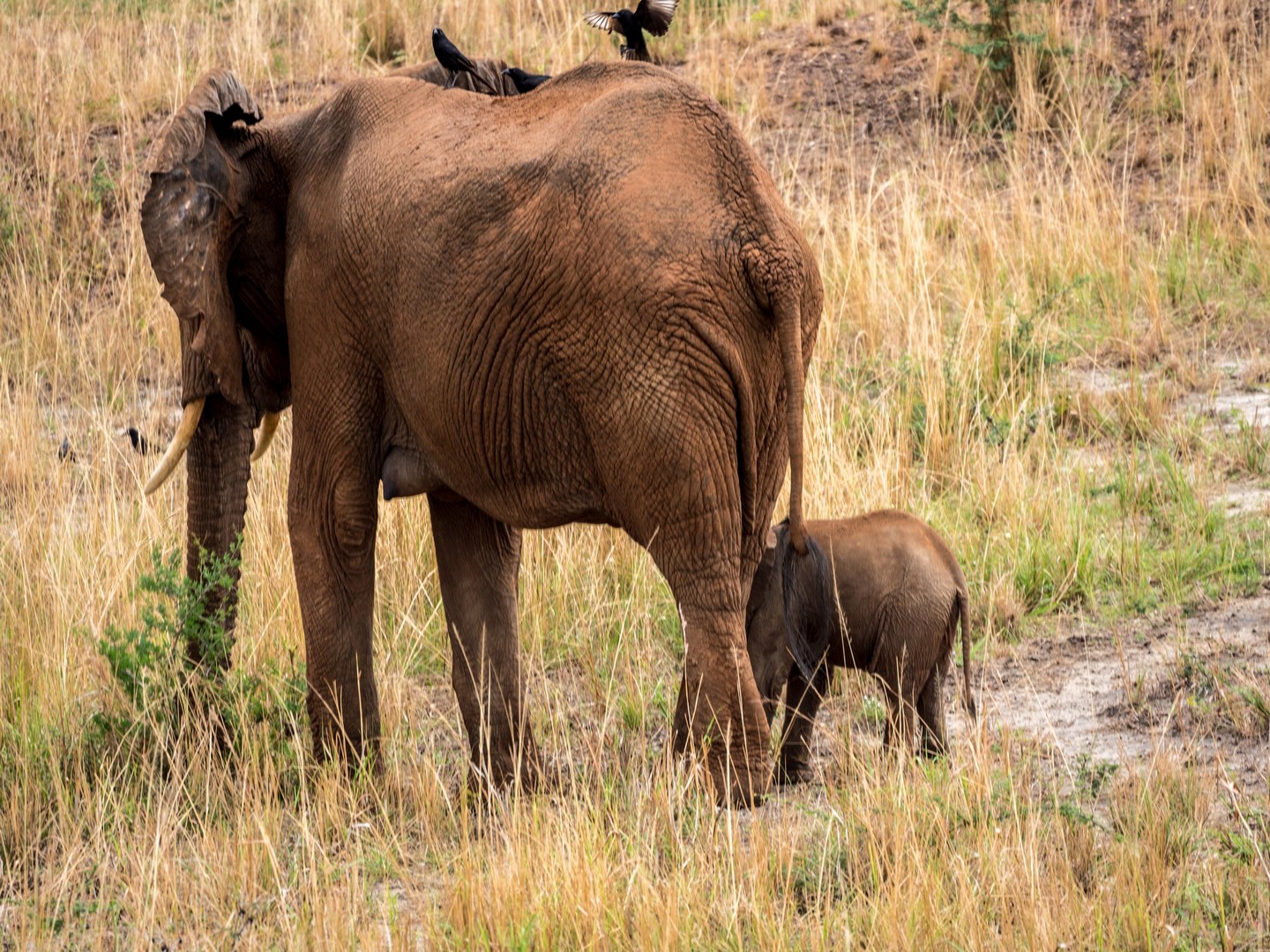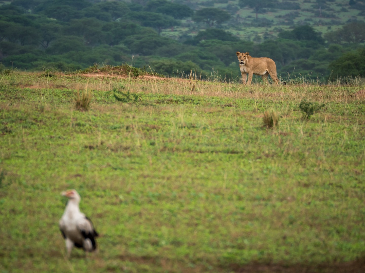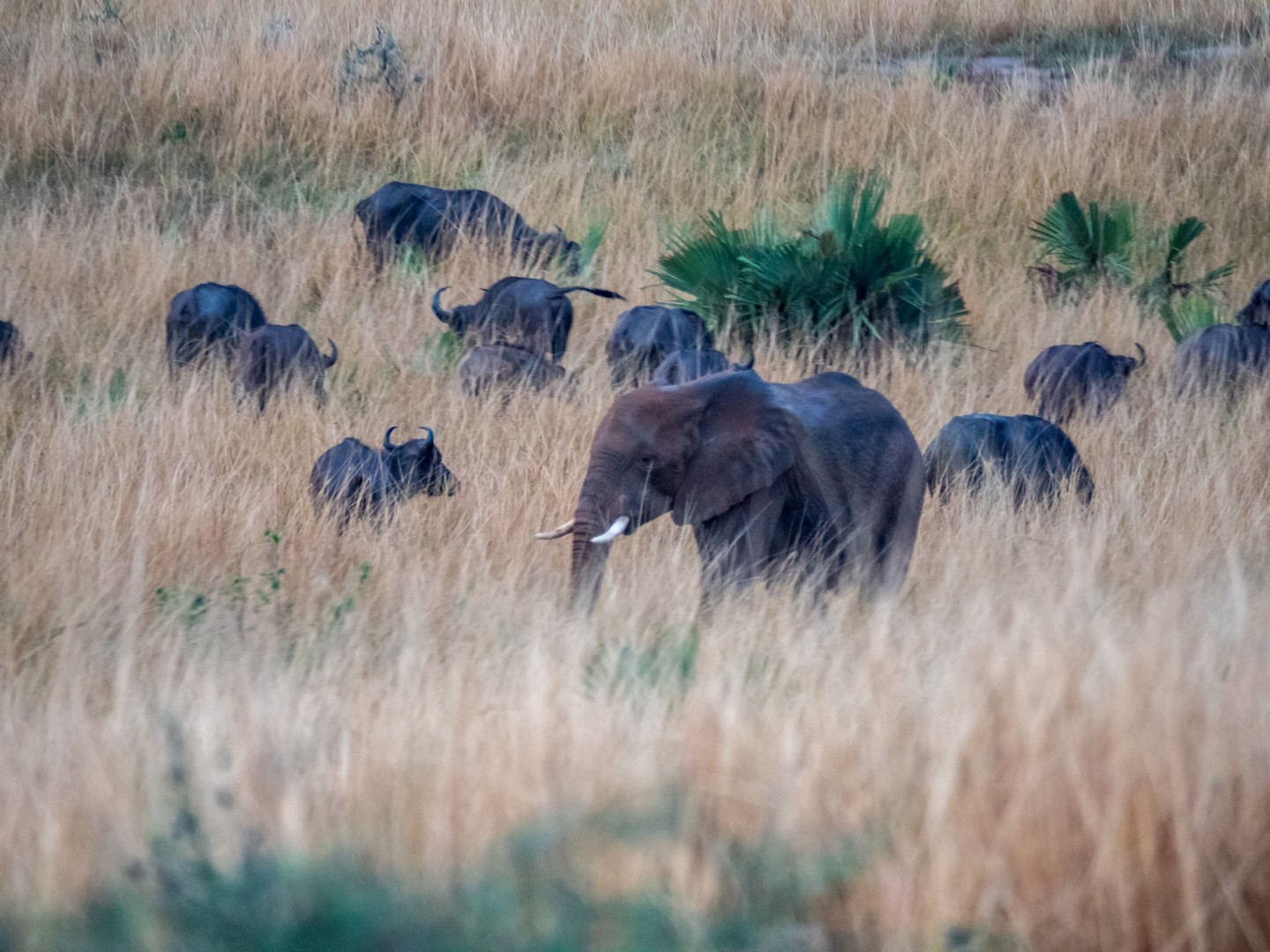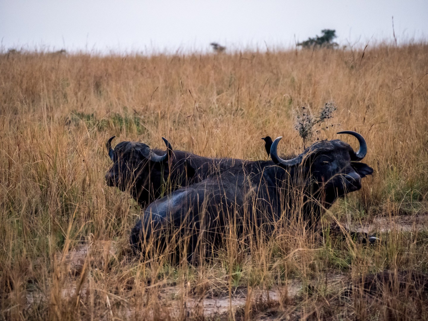 Et déjà, le deuxième « Big Five » se montre : le buffle ! De tous ces cinq animaux, c’est sans doute lui le plus dangereux. Cette grosse vache aux apparences paisibles a un très, très mauvais caractère. Surtout si vous croisez un mâle tout seul (ce qui voudra dire qu’il a récemment été jeté dehors de son troupeau après un combat avec le mâle dominant, ce qui le rend perturbé et dangereux). Et pour compléter ce mauvais caractère, un buffle, ça court vite. Très vite. Et ça charge. Mais en troupeau, les buffles sont impressionnants à regarder. Comme la plupart des gros mammifères herbivores (comme les rhinos et les éléphants), on trouvera souvent sur leurs dos un ou plusieurs oiseaux. C’est un deal entre eux, les oiseaux se nourrissant des insectes et parasites qui peuvent rendre la vie impossible au mammifères. Un vrai garde-manger sur pattes !