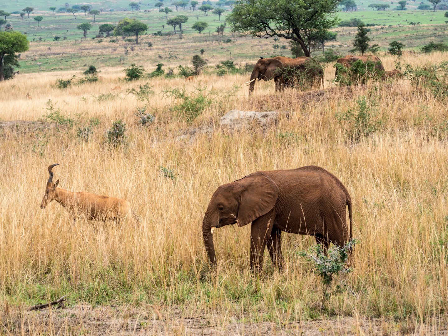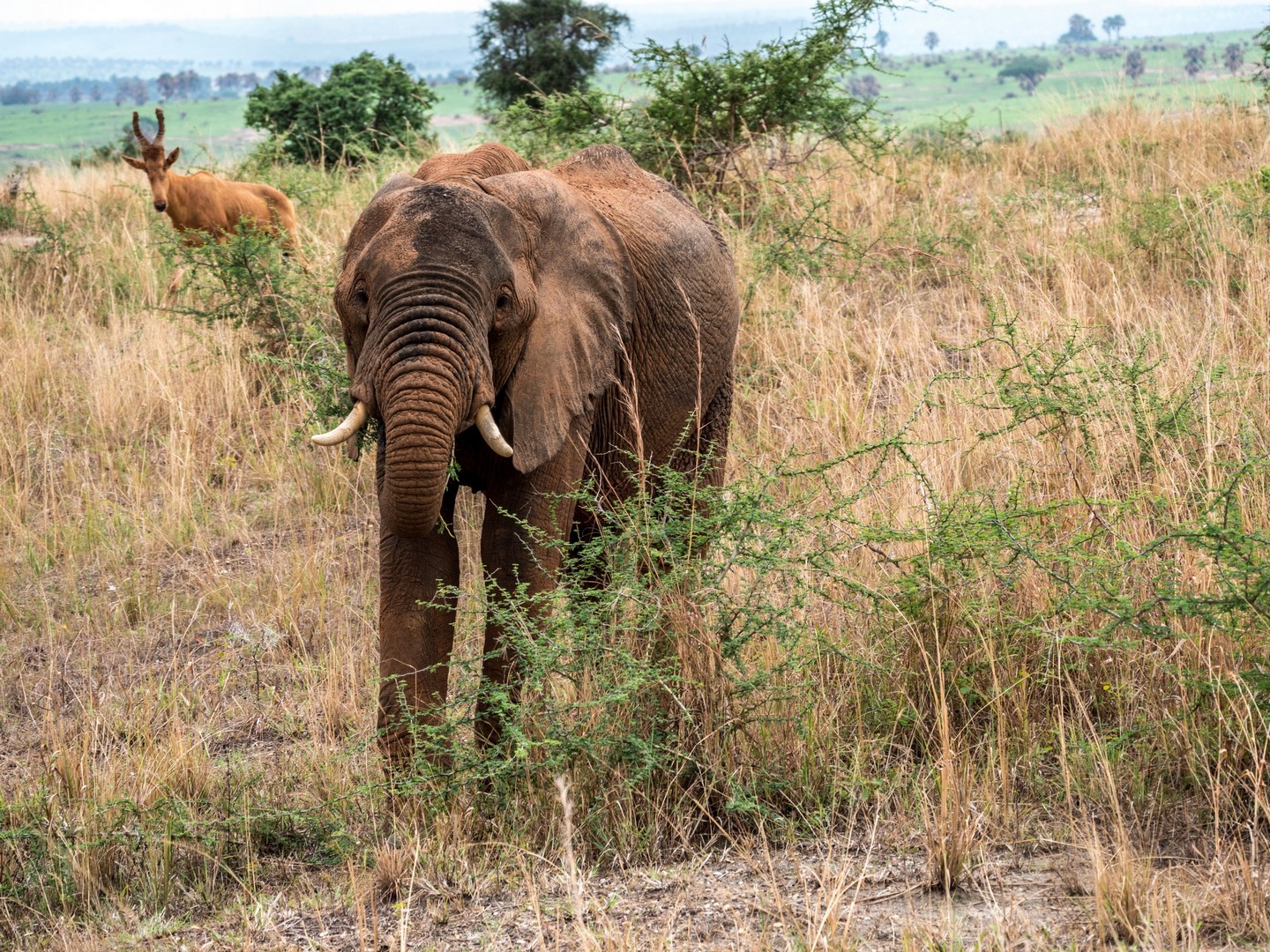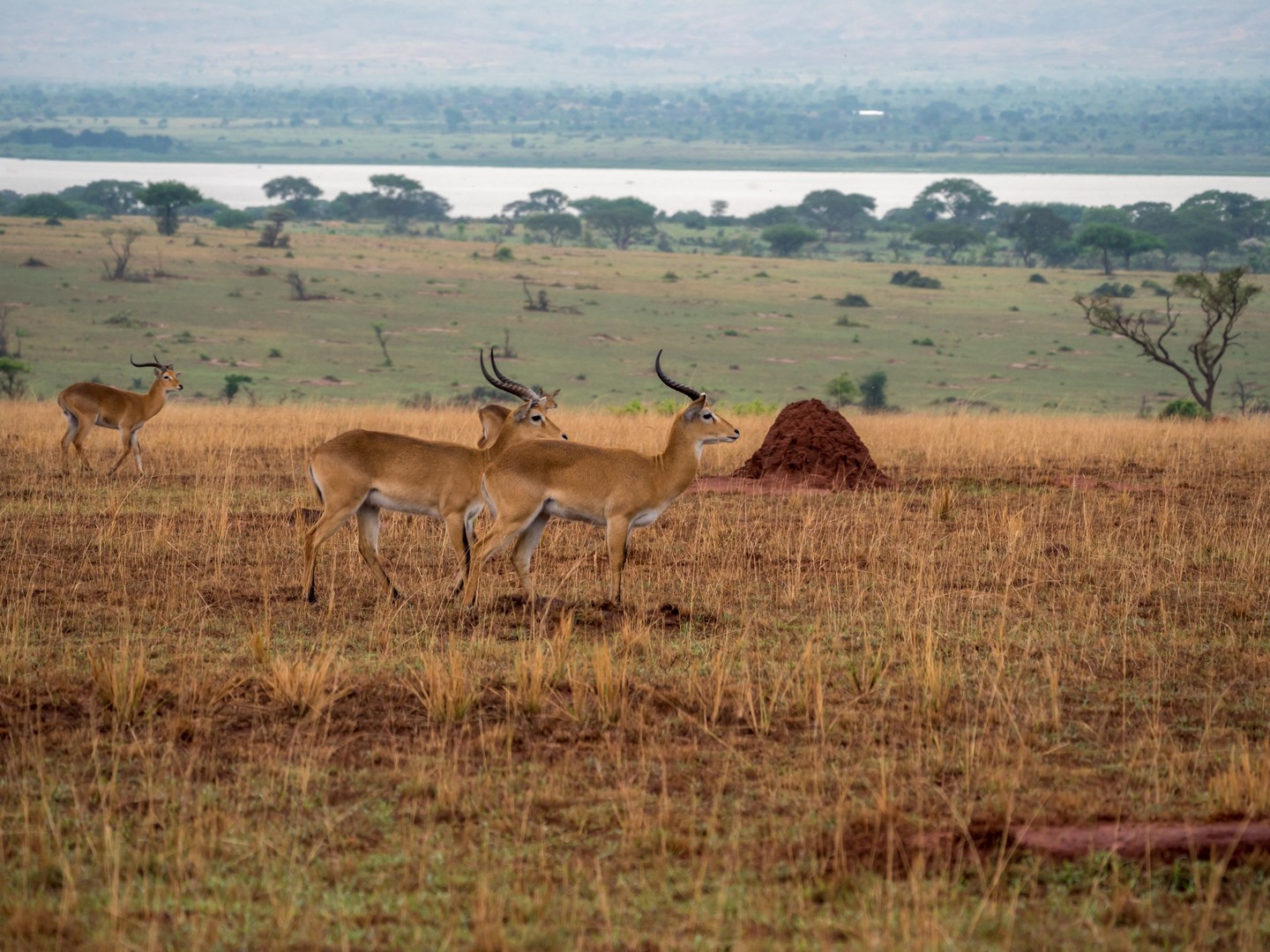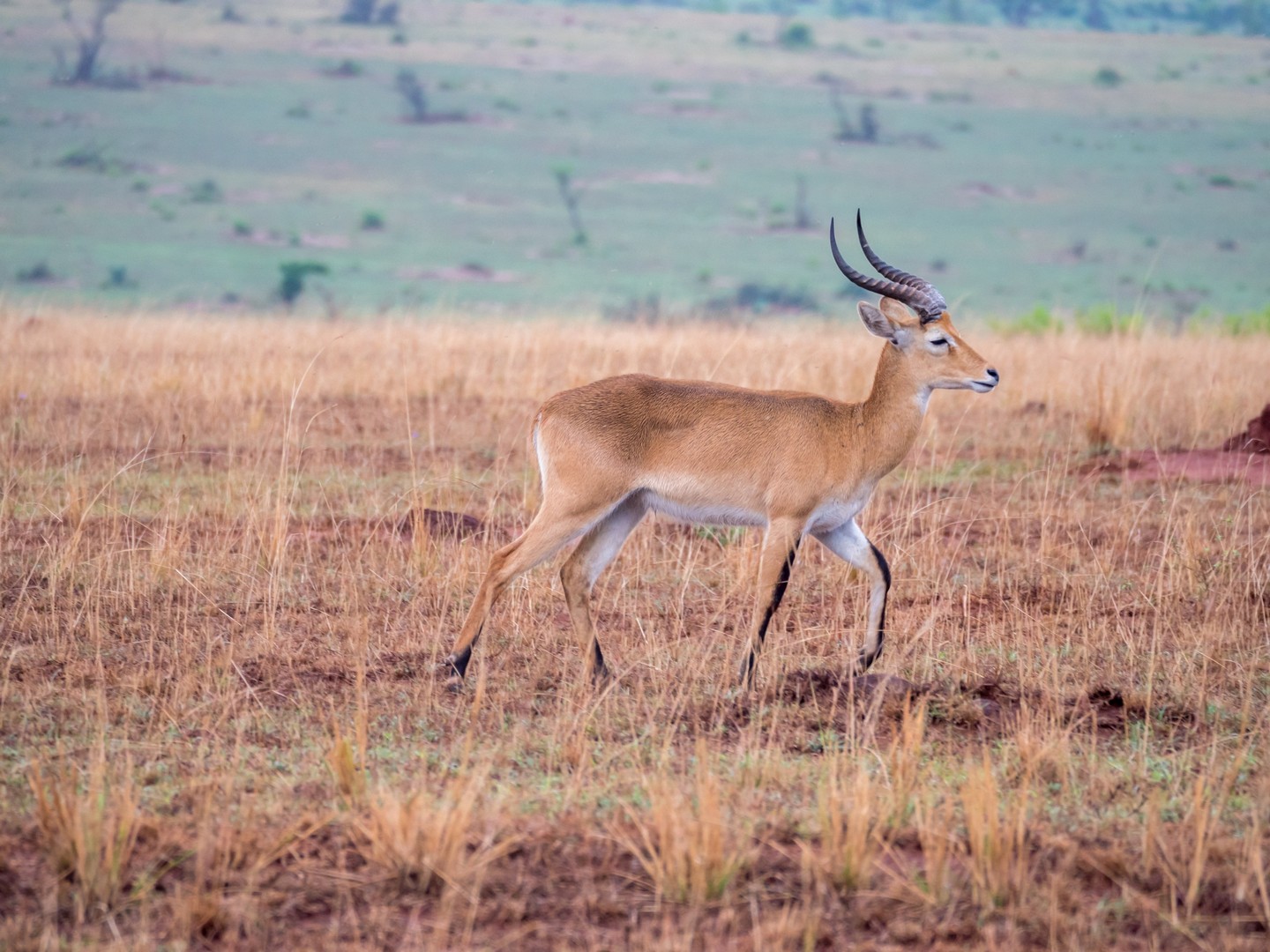 Les prochains animaux que nous rencontrons sont les antilopes, alias « le garde-manger de la savane » comme nous allons le découvrir. Et des antilopes, il y en a beaucoup, de plusieurs tailles, de plusieurs races… depuis l’élégant cobe de Buffon et ses jolies bois (emblème national ougandais) jusqu’à l’étrange bubale de Jackson et sa drôle de tête toute plate, il y en a partout…