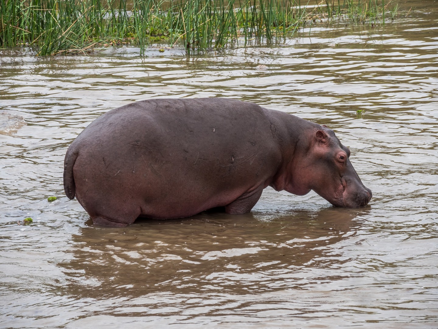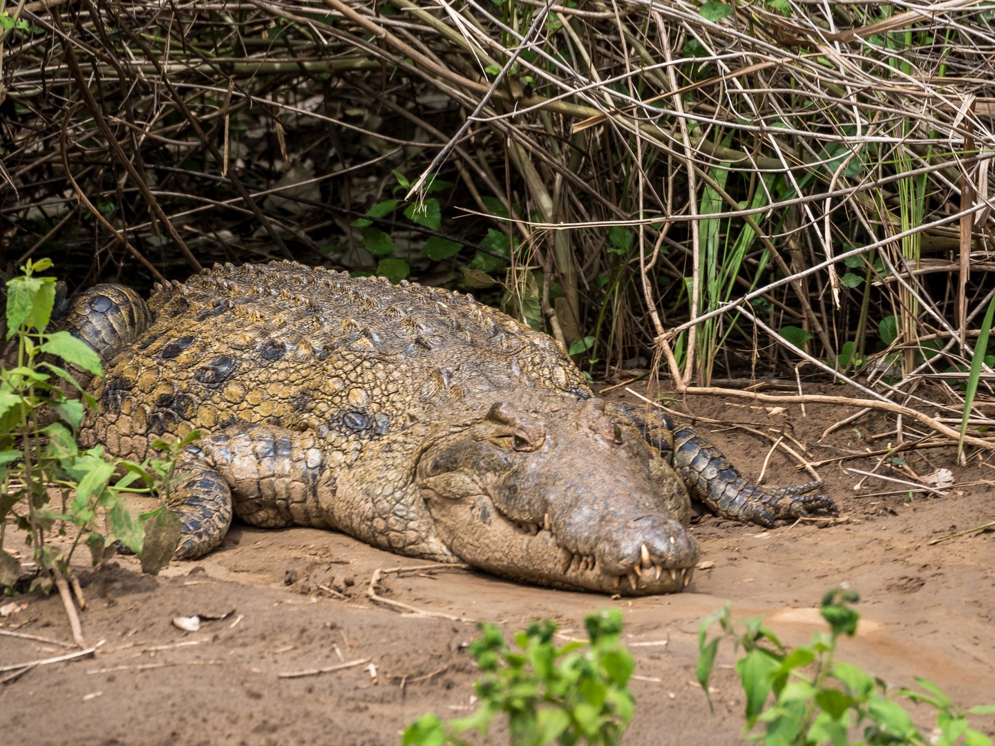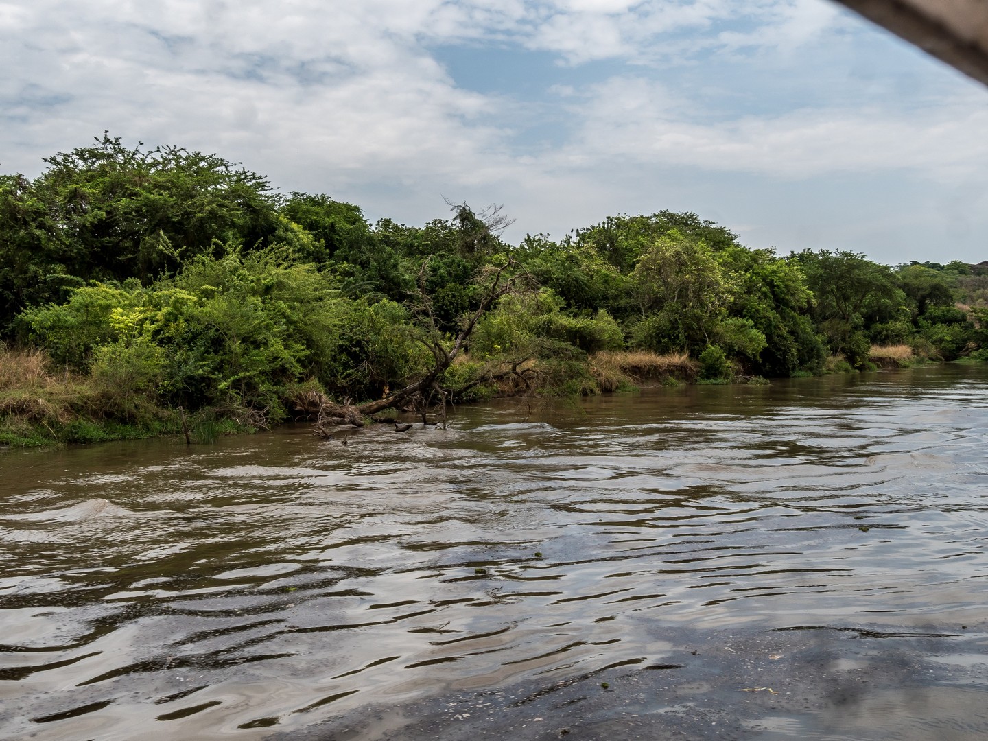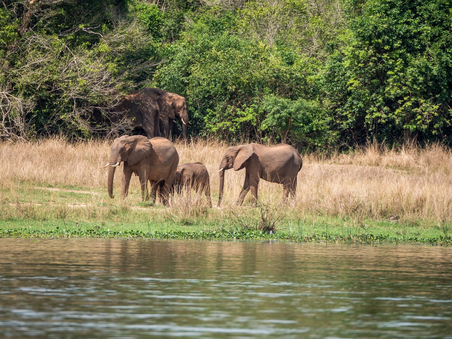 Le parc porte le nom de « Cascade de Murchinson » et c’est précisément elles que nous allons voir. Pour cela, il faut d’abords embarquer sur un bateau pour rejoindre un sentier de randonnée qui vous emmènera sur le sommet de la cascade. Ça fait partie de la beauté du lieu. Au début, le Nil semble tranquille. Les fleuves, chenaux et lacs sont les lieux idéaux pour observer la faune, notamment les oiseaux, qui sont très, très nombreux : hérons, martin-pêcheurs de toute sortes… Tous très difficile à capturer en photo, je dois dire ! Evidemment, il y a une foule d’hippopotames dans l’eau. Nous sommes en plein après-midi et aux heures chaudes, ils préfèrent être au frais. Quelques antilopes se promènent également, des éléphants, dont un (ou une, les femelles d’éléphants d’Afrique portent également des défenses) qui n’a pas l’air très content de nous voir et semble s’agiter un peu mais l’animal emblématique du bords du Nil, c’est le crocodile. Et on en croisera quelques uns ! Murchinson a la plus grosse concentration de crocos d’Ouganda et pour les voir, il faut quand même être observateur/trice puisque la couleur de leur peau brun-jeune-vert se confond avec celles de la rive ! Je comprends mieux les conseils de Michael, notre guide, de ne pas nous approcher des bords de l’eau (sans compter que les hippopotames sont également très dangereux). Lorsque nous croisons un grand reptile la gueule ouverte, on se dit qu’on est bien peu de choses et qu’en fait, à l’état de nature, l’homme vit entouré de danger !