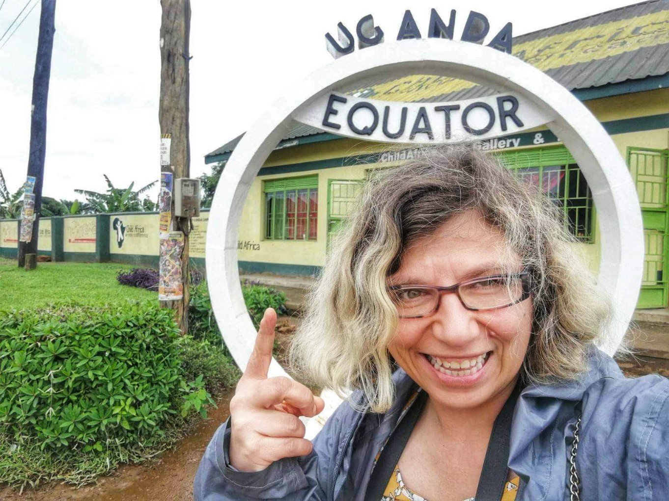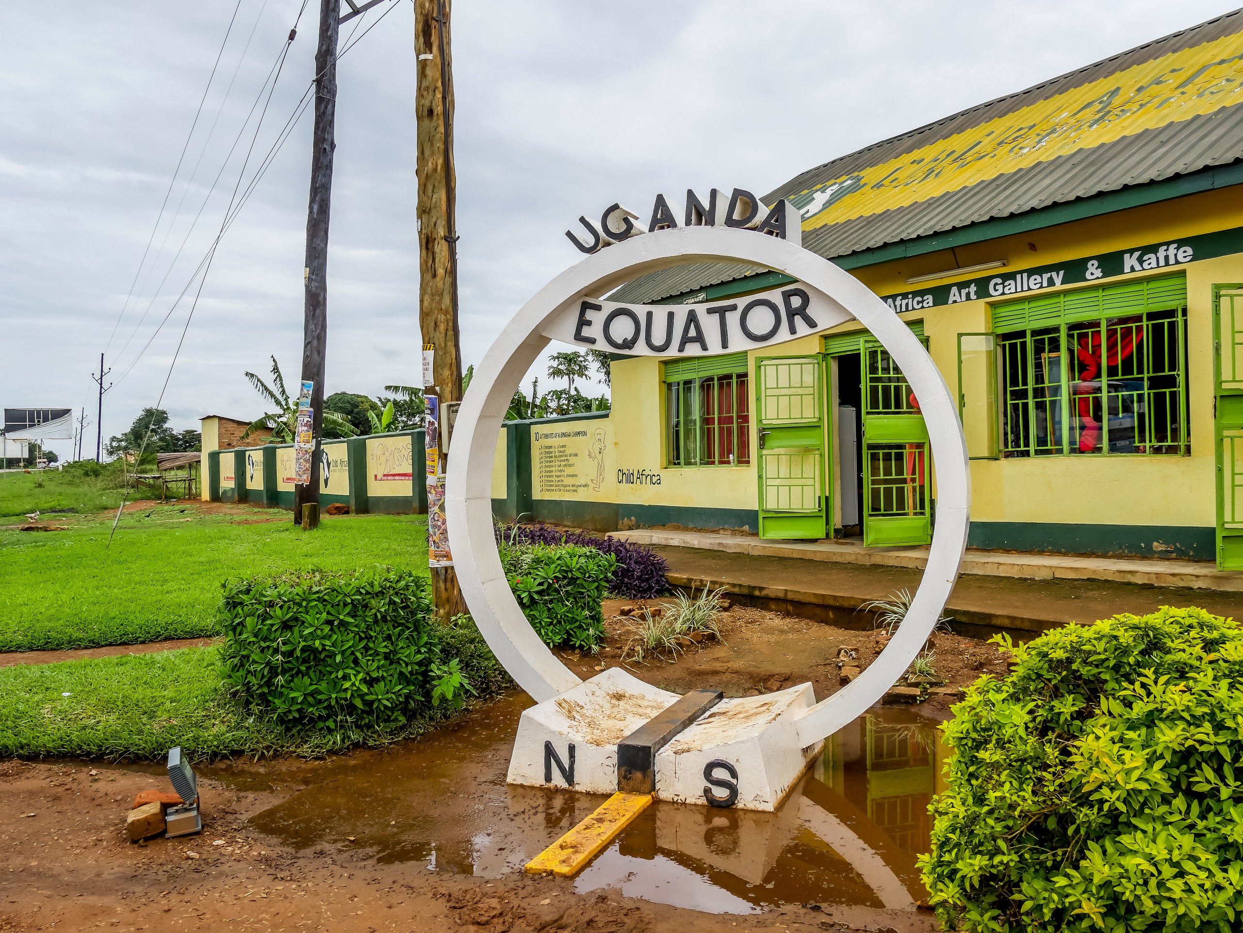 On trace tranquillement vers le sud-est, à travers différents villages. Jusqu’à ce que nous tombions sur une petite attraction touristique, mais finalement pas des moindres pour un voyageur : le passage de l’Equateur. Au bord de la route, des deux côtés, un cercle marque l’endroit précis où se situe l’équateur. Pour n’importe quel voyageur, c’est tout de même un moment émouvant de se trouver là. Il y a de ces points géographiques (l’équateur, les tropiques, les pôles, le Méridien de Greenwich, la ligne de changement de date…) invisibles mais qui aident à mesurer la Terre, qui servent de jalons aux voyageurs. On fait la file devant le monument pour prendre un selfie et je n’y échappe pas : c’est le genre de moment qui doit être immortalisé.