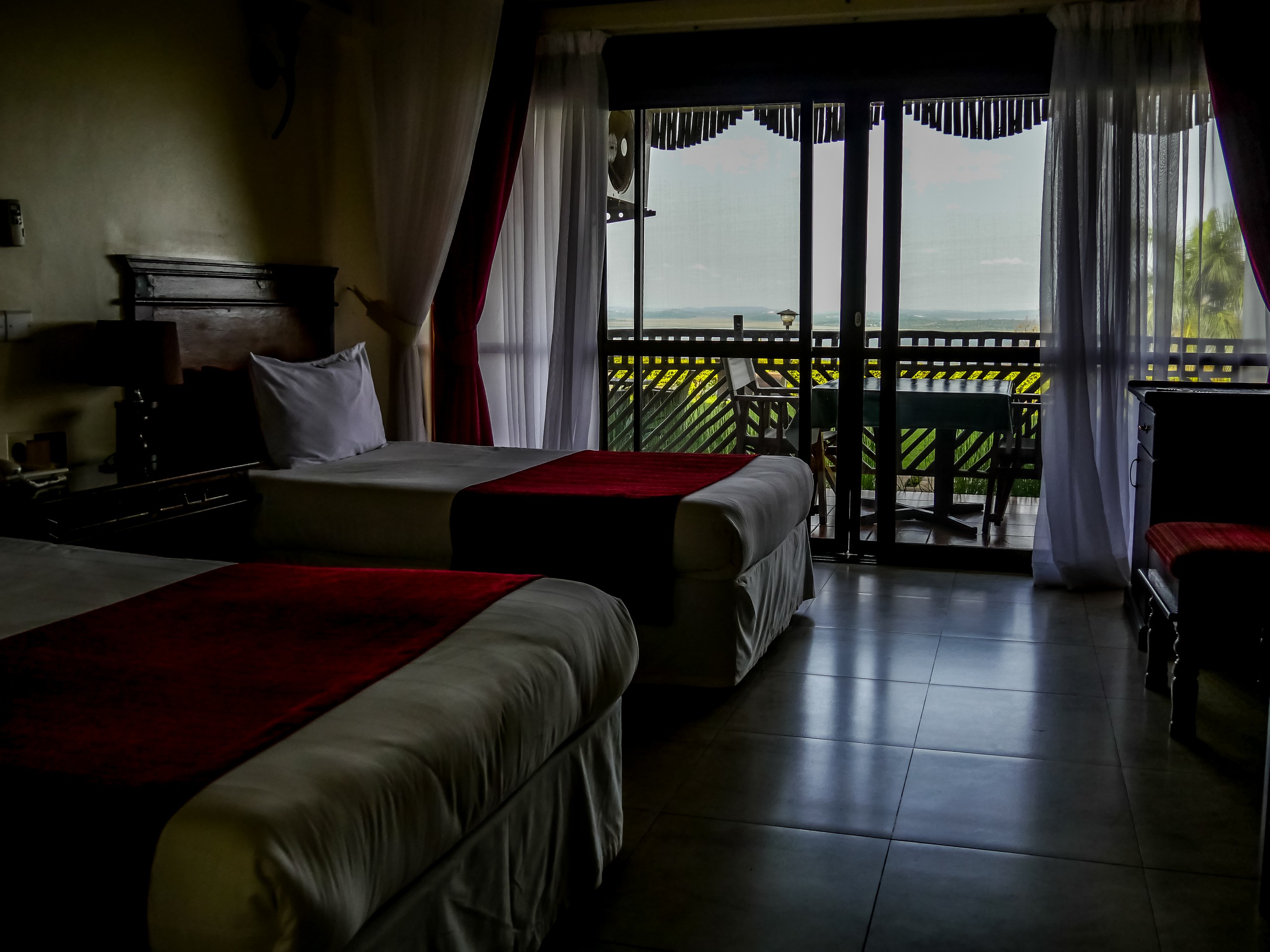 Le Cassia Lodge est situé en hauteur, dominant l’énorme ville. C’est un hôtel tout ce qu’il y a de plus classique, confortable avec une belle piscine et une terrasse qui permet de s’en mettre plein les mirettes. Au loin, le Lac Victoria, le plus grand lac d’Afrique. On y distingue quelques îles… et sans doute les côtes tanzaniennes. L’esprit vagabonde et se transporte déjà ailleurs rien qu’à regarder cet horizon ! Du côté des chambres, c’est un hôtel bien tenu. Les chambres sont spacieuses, claires, confortables et comme l’hôtel est un dehors de la ville, un bar et un restaurant sont présents sur place, ça aide.